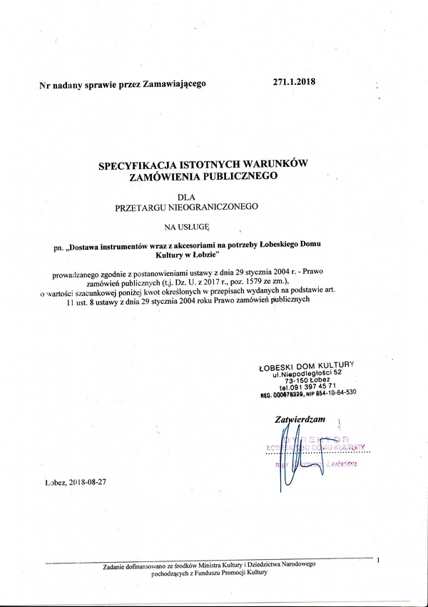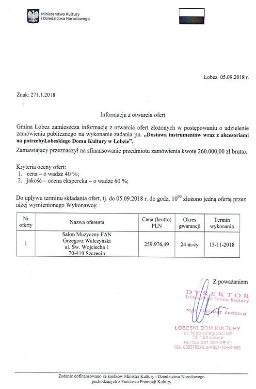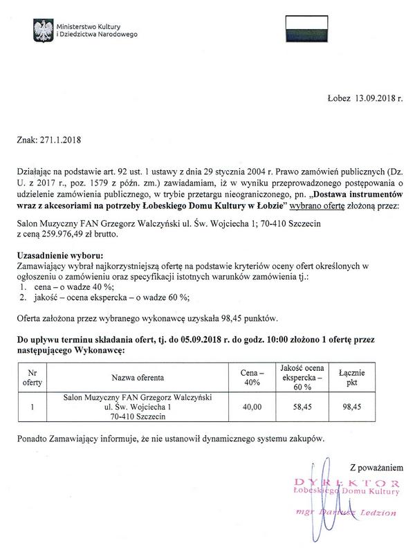 pn. „Dostawa instrumentów wraz z akcesoriami na potrzeby Łobeskiego Domu Kultury w Łobzie” |